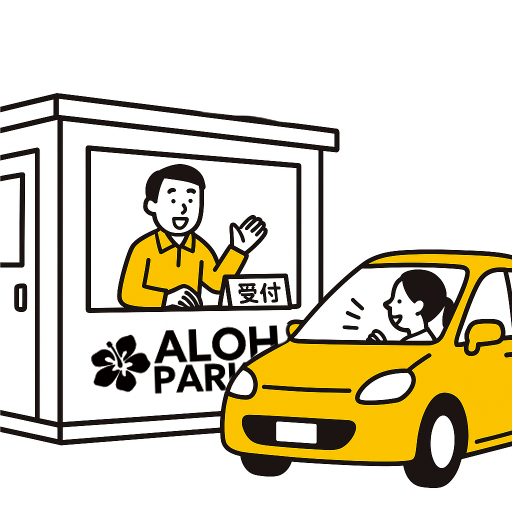 1.アロハパーキングに直接お越し下さい。受付で料金をお支払いいただきましたら、チケット(領収書兼)をお渡しします。