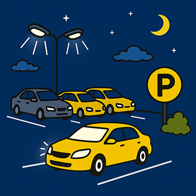 アロハパーキングは、 夜も照明がありますので、お帰りの際もスムーズで安心です。